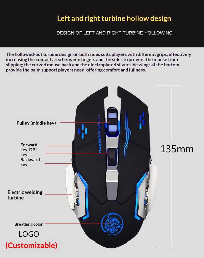 Colors: 2.4G rechargeable silent black, 2.4G rechargeable silent white, 2.4G rechargeable silent blue, 2.4G rechargeable silent pink and white