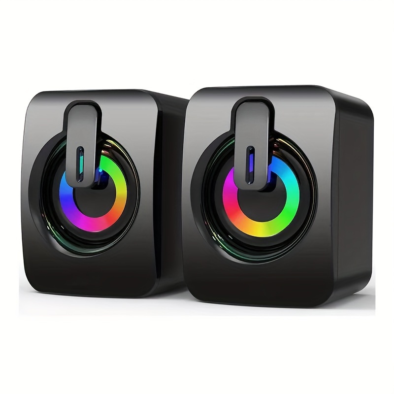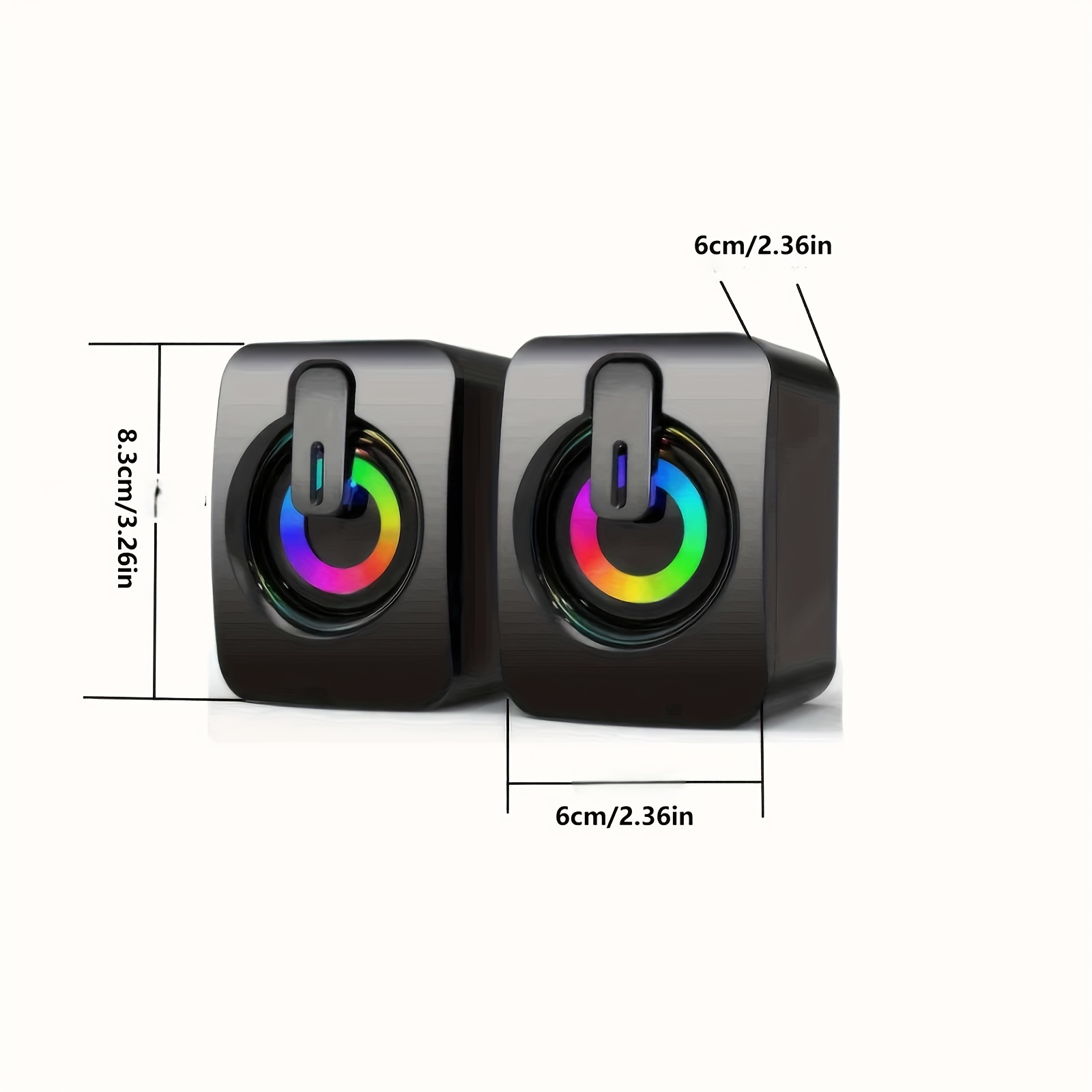 USB-Powered Desktop Computer Speakers 2.0 Channel Wired PC Speakers with Rainbow LED Backlight, ≤36V Operating Voltage, No Battery Required - Home Office Gaming Desk Audio Sound System